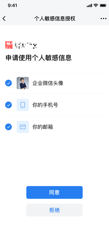 5.首次认证需要用户确认授权信息,同意后才能获取相关信息