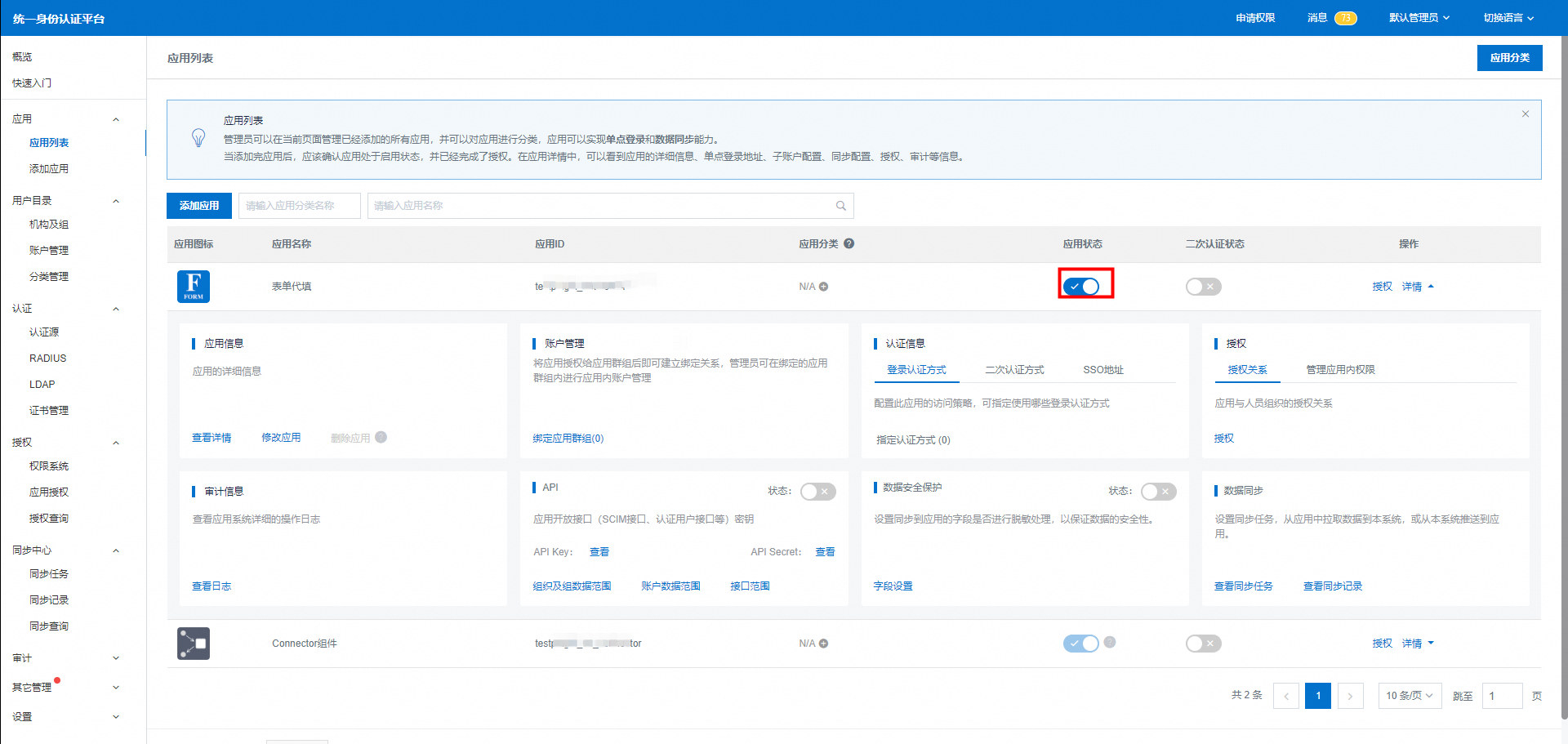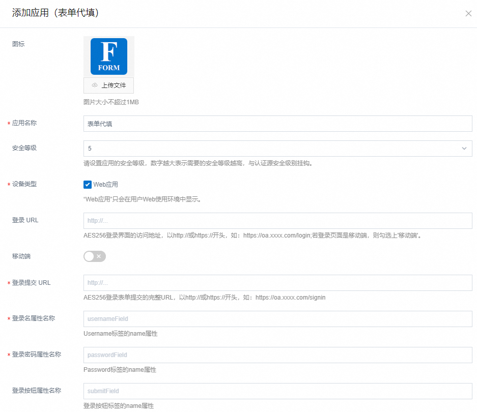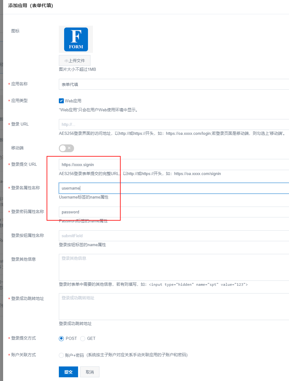 通过应用身份服务的应用管控(Application)功能,使用其中的表单代填应用模板实现对A应用的单点登录以及身份的鉴别。