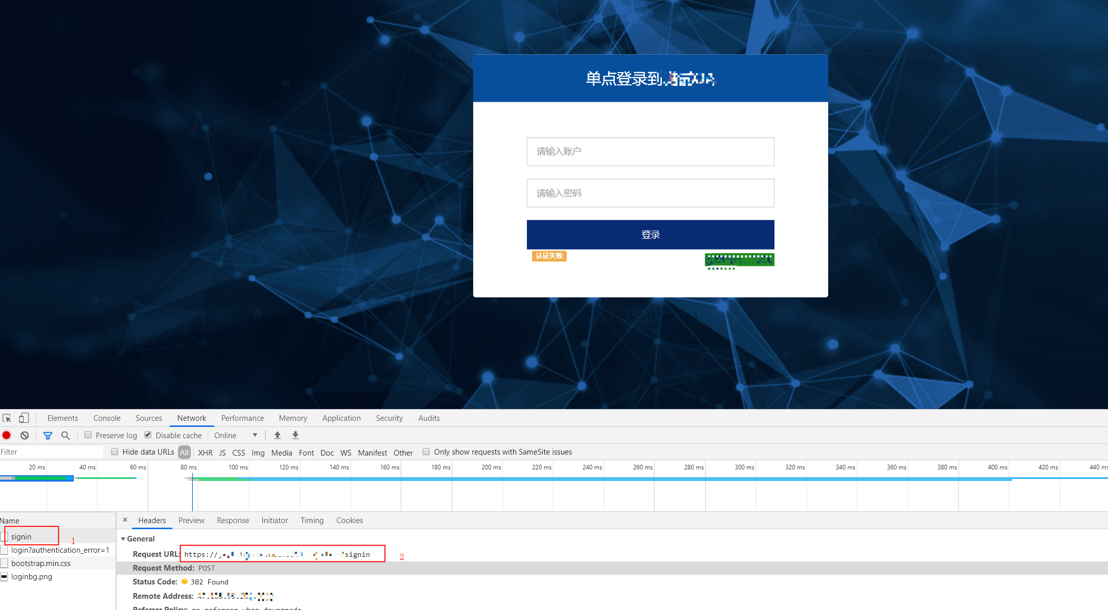 在SP登录页面,通过F12打开network,获取到登录请求的url。