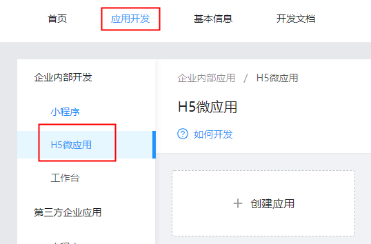 点击应用开发,选择H5微应用