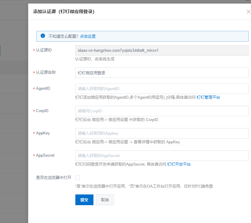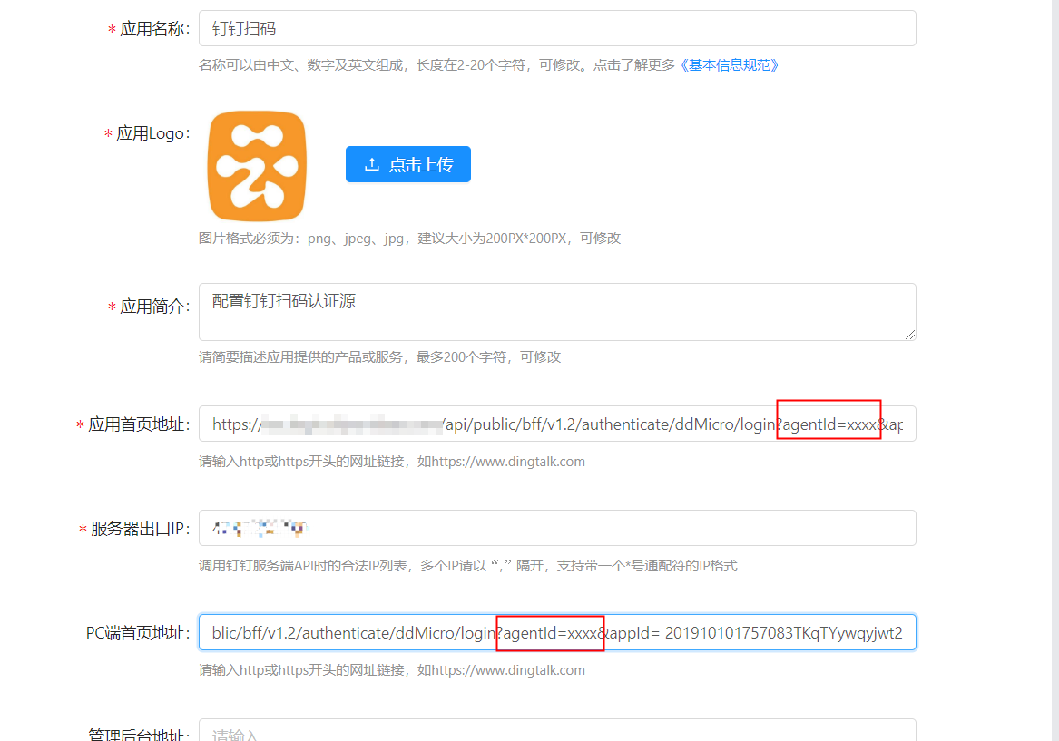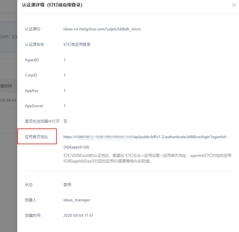 该应用ID是上面url中的appId参数,拼接成url值为:https://{IDaaS_server}/api/public/bff/v1.2/authenticate/ddMicro/login?agentId=&appId=201910101757083TKqTYywqyjwt2