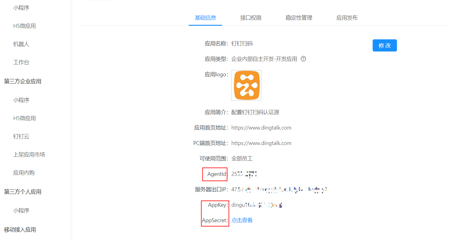 4.5. 查看应用的详情,获取应用的AgentId参数
