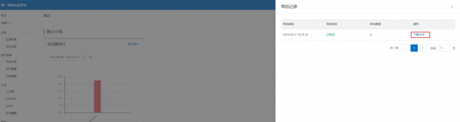 3.界面上点击’下载文件’,可以导出统计数据