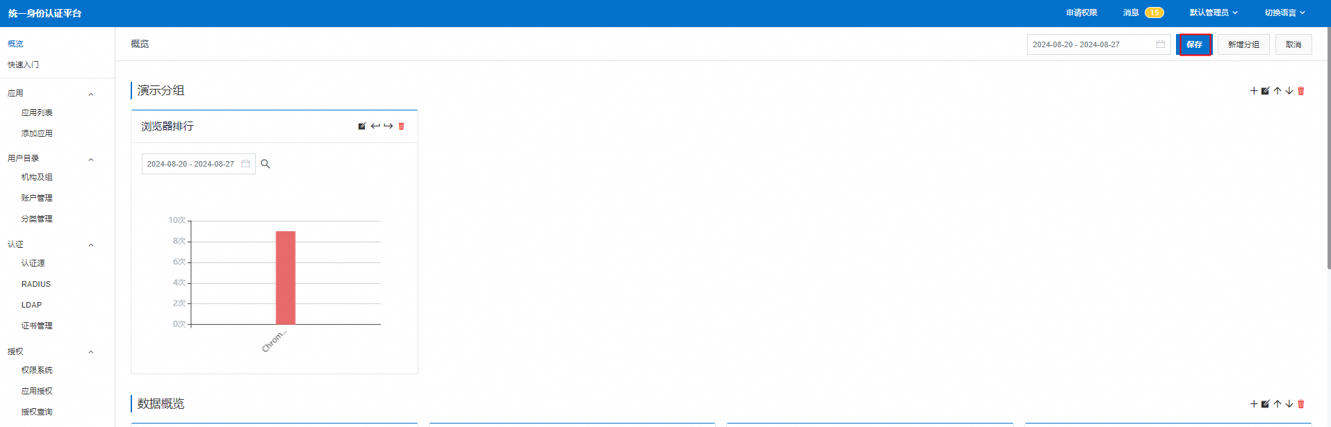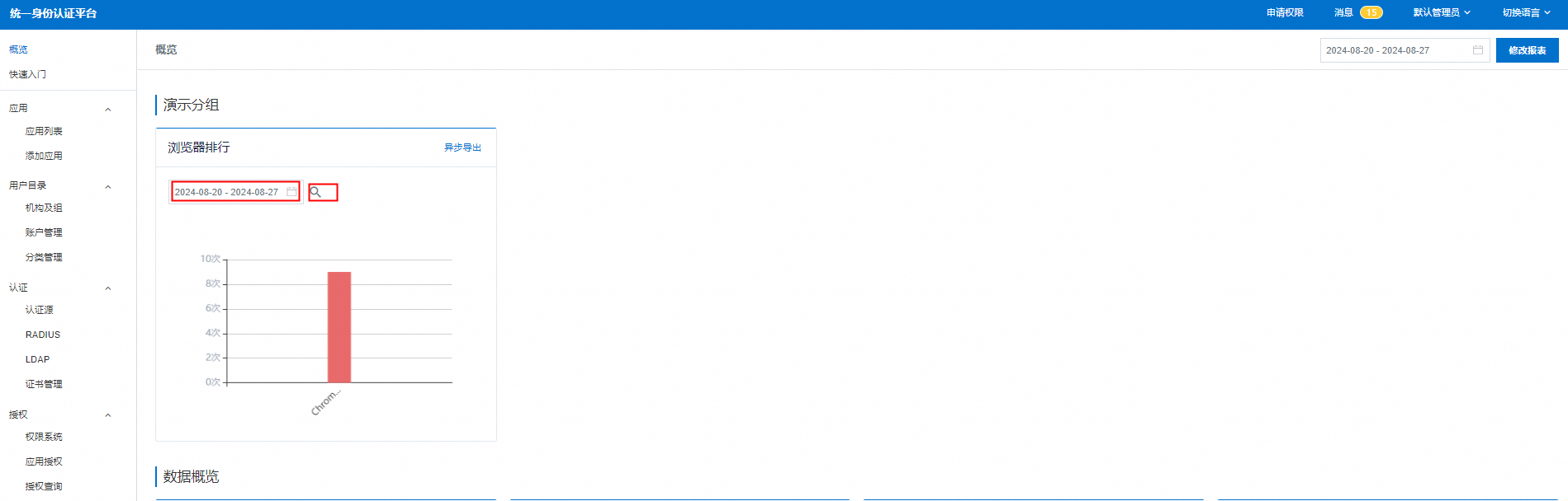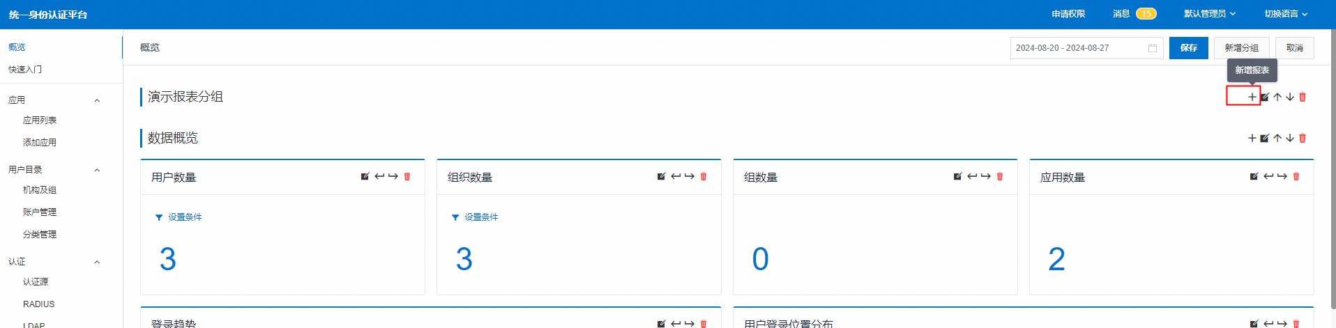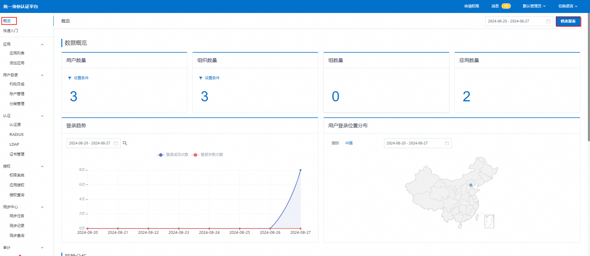 1.以IT管理员登录系统,在左侧菜单中进入’概览’,在右侧点击’修改报表’进入。