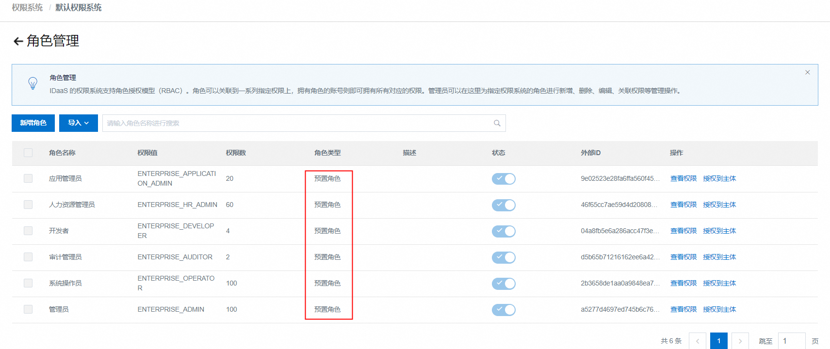 所谓自定义的IDP角色,是指除系统预置的角色以外新增加的角色。
